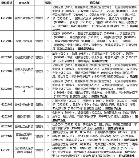 招聘岗位、条件详见下表,所有岗位均为编制外(人事代理)招聘岗位。